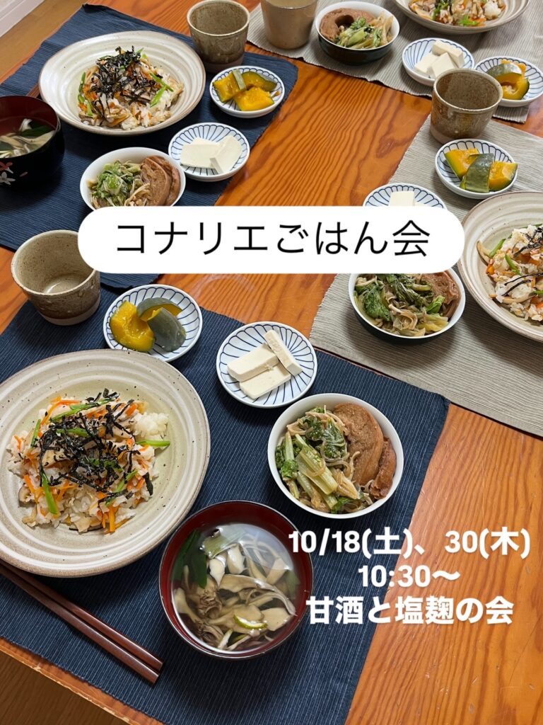 10/18(土)、30(木) コナリエごはん会 甘酒と塩麹の会【参加者募集中】