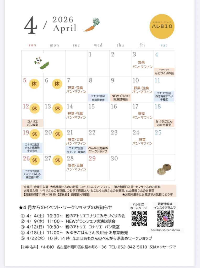 場所は千種区で、ハレBIOからも近く、美味しいもの、楽しいこと、お子さんが楽しめるイベントや企画も盛りだくさんですので、ぜひ遊びにいらしてくださいね!